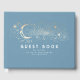 Noche estrellada y noche de luna creciente polvorienta boda azul y oro libro de invitados