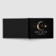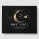 Noche estrellada y la luna creciente escena cósmica boda negro y dorado libro de invitados