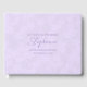 Captura momentos emotivos con un cuaderno personalizado de recuerdo de boda. Haz que el día especial de la novia sea aún más memorable con un libro de invitados personalizado diseñado para mensajes cariñosos, consejos y buenos deseos de familiares y amigos. Con un delicado diseño floral en tonos de lila suaves, este elegante cuaderno se convierte en un tesoro preciado que ella volverá a visitar durante años. Personaliza la portada y el texto del panel lateral utilizando nuestra plantilla fácil de usar para que coincida con el tema de tu boda o estilo personal. Crea hoy mismo tu propio libro de invitados de "Cartas a la novia" y regálale un recuerdo lleno de amor.