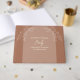 Crea un bonito recuerdo para la novia. Este cuaderno de recuerdos ofrece a su familia y amigos la oportunidad de expresar mensajes escritos para que la novia los lea y recuerde durante años. Diseño floral. Se muestra en color marrón mocha. Personalice la portada y el lateral del libro con el texto deseado. Utilice la plantilla para crear sus propias cartas florales para el álbum de bodas de la novia.