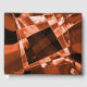rectángulos y cuadrados irregulares, algunos alineados, pero inclinados. En los colores naranja parduzco y algunos corales con manchas fuertes y algunas líneas que separan "objetos".