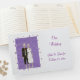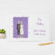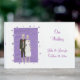 Una pareja de esqueletos íntimos con un vestido de boda azul y blanco, en un fondo de lavanda con estrellas de lavanda, está impresa en libros de invitados personalizados. Hay marcadores de posición para nombres y fecha de boda en la parte delantera, y un marcador de posición para texto adicional en la columna vertebral. El texto está escrito en letras de guión. Hay elementos coincidentes en esta tienda. Gracias por comprar en CherylsArt en Zazzle.