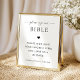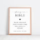 Anime a sus invitados a dejar oraciones para los nuevos Sr. y Sra. con este cartel moderno y elegante de libro de visitas de la Biblia, que presenta escritura moderna, corazón negro y su texto personalizado. Agregue fácilmente sus propios detalles haciendo clic en la opción "personalizar".