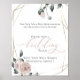 Floral Rosa Polvo para combinar con el tema de tu boda, Una solicitud a tus invitados para que firmen un bloque de construcción para los recuerdos del libro de invitados de tu boda. Rosas de acuarela en rosa polvo chic moderno rodean un marco geométrico de estilo terrario dorado con vegetación de color verde salvia. Personaliza el texto, el estilo de letra, el color y el tamaño. Arte original creado para BarefootBride™ por © WhimsicalArtwork™ - Esta es parte de una Suite de Papelería de Boda completa con papelería de boda, baby shower y otros eventos.