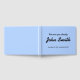 Este libro de visitas funerario o conmemorativo mínimo incluye el mensaje "Ya te extrañamos", y el nombre personalizado y las fechas de nacimiento/muerte del individuo que ha fallecido. Se podría usar para registrar recuerdos aficionados de alguien que ha fallecido recientemente. El texto es negro, y el fondo es azul claro de color.