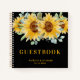 Libro de invitados Country Wedding con ilustracion rústico de girasoles color agua sobre un fondo negro. Personaliza con nombres de pareja y fecha de boda.