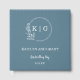 Un elegante libro de oro con un monograma azul y blanco, perfecto para su boda. Añade tu propio texto y haz que este botón mire hacia atrás en los años venideros!