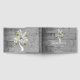 Graba a los huéspedes en tu gran día con un libro de oro del Día de la Boda del Árbol de Oro. El diseño de este libro de visitas tiene un fondo de madera gris adornado con un árbol con corazones floridos en sus ramas. También hay material de boda adicional disponible con este diseño.