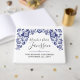 Diseño boda clásico inspirado en el "Delfts Blauw" (Delft Blue). ¡Celebra tu día especial al estilo tradicional holandés! Los elegantes tonos cobálticos y las floridas ornamentales auténticamente detalladas le dan un tono atemporal a cualquier celebración contemporánea. •Personalízalo! Siga la plantilla, o haga clic en el botón "Personalizar" para realizar cambios profundos que incluyen el tipo de letra, el tamaño del texto, el color y la ubicación. ・ ¡Coordinarlo! Examine la colección de Bodas Delfts Blauw para ver todos los productos que coincidan, incluidos los signos de bienvenida, los favores de recepción y más.