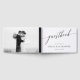 Elegante libro de bodas con un hermoso y delgado guión de caligrafía. Añade tus nombres y la fecha a la portada, y una foto al fondo.