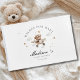 Celebra la próxima llegada de tu pequeño con nuestros adorables "Deseos para el Bebé! " libro de invitados para duchas de bebé. Con un encantador osito de peluche con un diseño vintage de un avión, este libro de personalizable es el lugar perfecto para recoger los más sentidos deseos, consejos y amor de sus huéspedes. Escoja entre 7 deliciosas opciones de color para que se adapte a tu tema de la ducha, desde los neutrales suaves hasta el azul pastel y los rosa. La cubierta frontal y la columna vertebral son totalmente editables, lo que le permite personalizar el nombre, la fecha y los detalles especiales. Ya sea que esté planeando una ducha de bebé moderna, clásica o caprichosa, este libro de visitas es una adición hermosa y significativa a su celebración. Un recuerdo eterno para que tu bebé atesorara algún día.