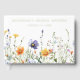 Este diseño presenta un borde colorido de flores silvestres de acuarela en tonos de púrpura, dorado, verde y azul.