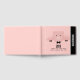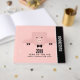 Un libro de visitas para celebrar el Año Nuevo chino. Una gran cara de cerdo rosa con una corbata de arco formal. Levantado por sus pezuñas negras de tela y mirando sobre usted. Dibujo tierno y caprichoso. Envuelto en un fondo rosado con corazones apagados. Listo para celebrar el año del cerdo 2019.
