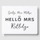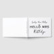 Libro de invitados sobre ducha de novias en blanco con un encantador diseño de tipografía que dice "adiós señorita hello mrs" con un diamante sobre el o para crear un anillo de compromiso y personalizado con el nombre de soltera y el nuevo nombre como esposa.