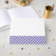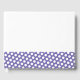 Este moderno y festivo diseño presenta una amplia franja de borde inferior violeta con puntos de polka blancos enlosados. El fondo blanco crujiente restante completa la composición.