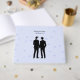 Un elegante libro clásico de invitados de boda con dos novios. Las siluetas dan un toque romántico a este hermoso libro. Esta escena minimalista es perfecta para tu boda romántica moderna. Este look se verá bien en cualquier temporada de bodas, primavera, verano, otoño o invierno. ¡Genial para una boda moderna y perfecta para una boda clásica también!