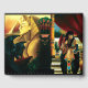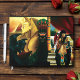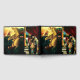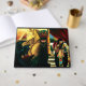 Reina egipcia con dragón rojo en el hombro. La Reina está sosteniendo una órbita de un universo. Un león negro con alas está sobre una montaña con un esfinge detrás.