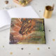 Libro de boda de cuento de hadas hecho en un fondo de color verde y rojizo, con gráficos de bisagras de aspecto antiguo y fabulosos dragones. Personaliza el texto negro para tu día de boda.