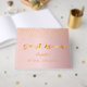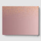 Un libro de invitados para una ducha de novia glamurosa, elegante y moderna. Un fondo degradado de rosa polvoriento chic con lluvia de confeti dorado. El texto: Libro de invitados está escrito con letras doradas de moda. Los nombres y la fecha están escritos con un texto dorado con estilo de letra a mano. Plantilla para su texto en el lomo, texto gris.