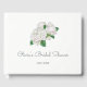 Este libro de oro de la ducha de novias presenta hermosas rosas blancas en un estilo acuático. Se puede personalizar con el nombre de la novia tanto en la portada como en la columna. Este libro de visitas es parte de una colección que incluye una amplia gama de artículos de papelería boda que coinciden, como invitaciones a bodas, tarjetas de respuesta, tarjetas de información, etiquetas de dirección, sellos postales, sobres, cajas de favores, tarjetas de pozos de deseos, programas, menús, regalos de novias y mucho más. Visite la página de la colección en nuestra tienda para ver el rango completo.