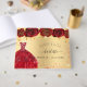 Para una dulce fiesta de 16, 16 cumpleaños. Un fondo dorado con chispas de purpurina rojo y falso oro, un vestido y rosas rojas, flores. El nombre está escrito con una escritura de estilo con letras a mano moderna. Personalice y agregue un nombre y una fecha. Espina: agrega tu texto.