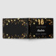 Un elegante fondo negro con estrellas de oro falsas. Agrega tu nombre y texto. El número de edad se escribe con un tipo de letra de estilo globo. Espina: agrega tu texto.