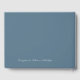 Dé a sus huéspedes la oportunidad de escribir un mensaje de agradecimiento y felicitaciones a su boda por este sobrio y minimalista libro de huéspedes con colores polvorientos azules y adornos florales.