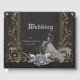 El lujo y el romance. Un marco dorado negro y plateado muy bien diseñado adornado con delicadas decoraciones de fibra. Estos bonitos detalles le dan al diseño un toque opulento y envuelven al espectador con una sensación de alegría festiva. Dentro de este marco mágico, una mujer se revela con un impresionante vestido boda. El diseño exuda un aura de exclusividad y calidez