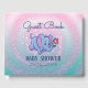 Personalizado lindo elefante bebé azul azul con flor rosa sobre fondo rosa y azul con chispas blancas