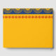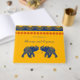 Este libro de invitados de boda ofrece una visión moderna de las ceremonias y recepciones de bodas tradicionales indias con su audaz paleta de colores de amarillo dorado, rojo y azul real. Su texto está acentuado por un motivo geométrico y presenta ilustraciones de elefantes en azul real.