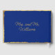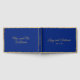 La sencillez de este elegante libro de huéspedes lo hace hermoso. El diseño presenta un delgado y minimalista borde dorado desigual con tipografía dorada para detalles de personalizable. Elegante fondo azul real.