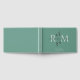An elegant wedding guest book featuring a two tone soft white initials monogram design, with initials gently placed behind the couple's names and accented by a refined botanical element, all against a pretty gray green background. Inside, the pages are lined for guests to leave messages, names, and well wishes. Minimalist and timeless, this design blends quiet texture with subtle detail, creating a meaningful keepsake for your wedding day.