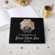 Elegant, Minimalist, Classic Black & White, Photo Personalized Tribute Funeral Keepsake, Honor a beautiful life with this Elegant Memorial Guest Book, featuring a customizable photo frame and soft script typography on a classic black background. It's the perfect tribute for a funeral, memorial, or celebration of life service. The front cover includes the name, years, and photo of your loved one, while the back offers a heartfelt message that reads: “Celebration of life so beautifully lived…” Inside, guests can share memories, condolences, and final goodbyes—creating a cherished keepsake for years to come.