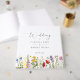 Capture the heartfelt wishes and memories of your special day with this beautifully designed wedding guest book. Adorned with delicate wildflowers and shimmering foil accents, it offers a graceful blend of elegance and charm. A perfect keepsake to look back on for years to come, this guest book adds a refined touch to your wedding decor while preserving all the love shared on your big day. Personalize the cover with your names and wedding date for a unique finish.
