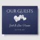 Elegant Navy with Hearts Guest Book designed with floating White Hearts on a Navy background for your Wedding Reception Accessories. The text includes: OUR GUESTS, The Bride and Groom's Names and Wedding Date. To personalize, simply insert your text into our easy template, replacing the sample.