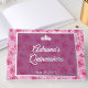 This elegant silver foil-accented guestbook will be a nice keepsake of your daughter's 15th birthday Quinceanera party. It features her name and the event date in silver foil on the cover with a pink background of roses. The spine has a minimalist crown and an XV.