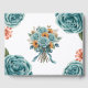 A beautiful floral wedding design featuring watercolor teal roses and soft coral daisies arranged in elegant corners on a clean white background. Perfect for modern romantic weddings, bridal showers, or engagement invitations. This design blends classic charm with a touch of contemporary style, creating a timeless and sophisticated look for your special day.