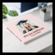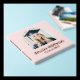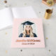 Libro de visitas de graduación con tu foto dentro de un marco de arco y el nombre del graduado con un tipo de letra audaz, de estilo retro. Texto de Relieve metalizado real sobre fondo de color rosa claro o personalizado.