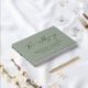 Este elegante libro de Relieve metalizado boda es el lugar perfecto para los bodas modernos y minimalistas. Con "el boda de" en la brillante caligrafía de Relieve metalizado de oro, sus nombres personalizados y fecha de boda se muestran debajo en un suave fondo verde sabio para un aspecto atemporal y sofisticado. El diseño contemporáneo y limpio es ideal para celebrar bodas elegantes, caseras de jardín o de primavera. Personalice la columna vertebral con el texto de su personalizado para crear un libro de visitas a medida que le encantará firmar en su día especial.