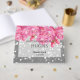 Este hermoso libro de huéspedes presenta una romántica mezcla de tiras rosas y grises suaves adornadas con delicados acentos de encaje floral y vibrantes flores de color rosa. El elegante diseño es perfecto para una celebración sofisticada y encantadora. Los nombres Jenifer Leigh y Robert Hughes que se pueden personalizar con sus nombres. Perfecto para bodas de verano o eventos con un tema atemporal y elegante.
