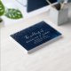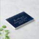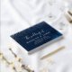 Captura mensajes y recuerdos sentidos con este elegante libro de bodas que presenta una romántica disposición fotográfica y un brillante fondo azul marino. El frente muestra un hermoso diseño estrellado con caligrafía elegante anunciando "El boda de" junto con nombres de personalizable, fecha y detalles del lugar. Perfecto para un boda moderno y atemporal, este libro de huéspedes le da un toque personal y refinado a su día especial. Fácilmente personalizarlo con tu propia foto y texto.