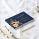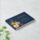 Elegante libro de Relieve metalizado dorado de Boda de girasol azul de la Marina.