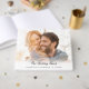 Este libro de bodas ofrece un marco fotográfico que llena la parte delantera del libro. El texto aparece en la parte inferior en un guión elegante y una fuente serif. Personalice su nombre y fecha de boda.