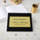 Elegante y glamoroso libro de oro de lujo y boda negro en un estilo sencillo y moderno y con texto personalizado. Ideal para moda de elegantes eventos y fiestas de corbata negra. El color de fondo negro es modificable. Puede cambiar el color después de pulsar el botón PERSONALIZAR. para un mejor efecto, elija un fondo de color oscuro Tenga en cuenta que el efecto oro está impreso, no es un Relieve metalizado de oro real.