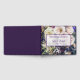 Elegante libro de Bodas Purple Floral diseñado con un hermoso ramo de flores en tonos suaves de violeta con borde violeta y texto. El texto incluye: Los primeros nombres y la fecha de Boda de la novia y Groom. Para personalizar, simplemente inserte su texto en nuestra plantilla sencilla, reemplazando el ejemplo.