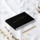 Elegante libro de invitados para bodas con el nuevo apellido en un elegante tipo de letra de caligrafía. Texto de Relieve metalizado real en un fondo de color negro o personalizado. El color de fondo se puede cambiar en la herramienta de diseño.