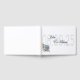 Elegante e intemporal, este clásico libro blanco presenta un diseño sofisticado con un rosa azul y crema. Letra de guión para los nombres de novias. Un número grande tiene una fecha en gris claro detrás de los nombres. Diseñado con precisión, es perfecto para bodas, eventos formales o reuniones de alto nivel dejando un divertido comentario de un invitado con algo que se puede recordar.