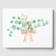 El diseño presenta un elegante marco oval de color oro impreso, decorado con tallos de eucaliptos acuáticos y una cinta de melocotón/naranja. La parte posterior está formada por un diseño coordinado de tallos de eucaliptos de color agua suave y floral de naranja/melocotón. Los elementos coincidentes para completar la colección de eventos están disponibles en nuestra tienda Zazzle!