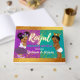 Princesa Afroamericana con adorables colas de ponis Afro usando tiara de diamante junto a un Príncipe Africano Adorable con corona dorada, pañal blanco y zapatillas azules. Fondo de bloques de color púrpura y Verde azulado con un toque de confeti dorado y borde de Relieve metalizado dorado. ©2022 Señales de Miss Fiesta Sassy