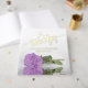Este magnífico libro de bodas presenta un diseño elegante, elegante, con un acristalamiento y romántico, con una foto de un solo lilo de tallo largo o de un rosa de color púrpura claro que se encuentra en su lado, reflejado en una piscina de agua. El texto de portada se imprime en Relieve metalizado con una elegante caligrafía de escritura que dice "el boda de" con sus nombres y fecha de boda. El diseño clásico y atemporal sorprenderá a sus huéspedes, y el libro servirá como un hermoso recuerdo de su día especial que puede apreciar en los próximos años.